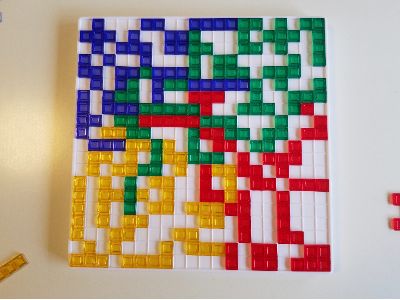 ブロックス(パズル)を用いて作業を行い、作業の方法①単独作業②協力作業によって、その結果に差が出るかを検証した。