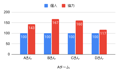 - Aチーム→70点UP、150%増