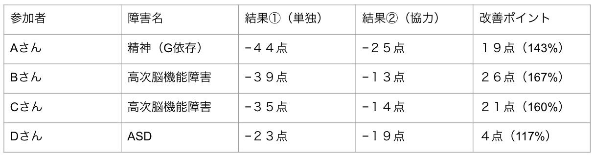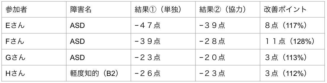 単独:55点、協力:97点、改善ポイント:42点(176%UP)