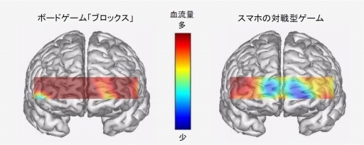ボードゲーム「ブロックス」で遊んでいる際は、スマホの対戦型ゲームで遊んでいる際よりも、前頭葉の脳血流量が増加し、より活性化するという事実が明らかになりました。